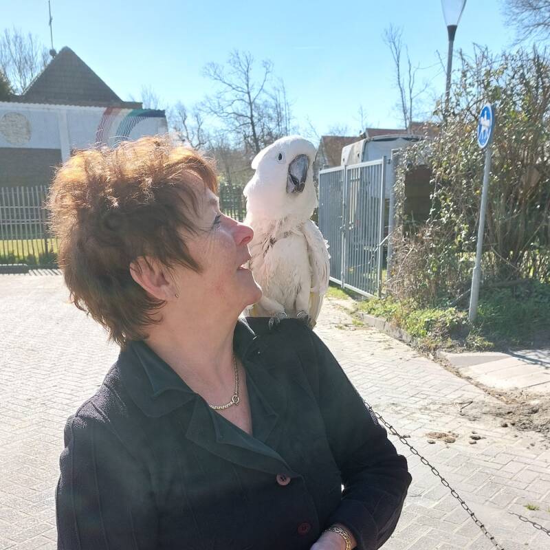 Dit weekend hadden we wel een heel bijzondere gast. Een meneer en mevrouw zochten een diervriendelijke Bed and Breakfast, want ze nemen altijd hun Kaketoe mee. Nou..............dan zijn ze bij ons op het juiste adres. Dus hadden we een Kaketoe in huis. Een super lief en schoon dier. Altijd leuk zo'n bijzondere gast!